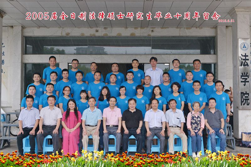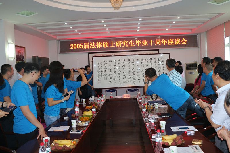 最后,2005届法硕学子向法硕中心赠送纪念品并合影。至此,2005届全日制法律硕士研究生毕业十周年座谈会在欢快的气氛中结束。