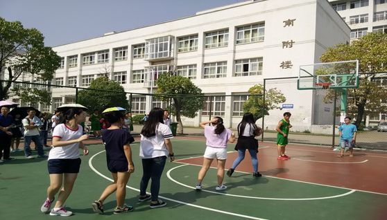 中场休息时间女生投篮也很给力,不惧烈日骄阳,积极投入比赛。五分钟时间,女生们尽自己的能力为自己的班级争取分数。