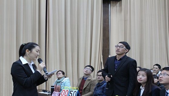 比赛在庄严的国歌声中隆重开幕,潘丰文书记为本次比赛致辞。首先,潘书记热烈欢迎各位同学、老师们的到来。她表示,举办本次党史党情知识竞赛是为了激发广大党员、入党积极分子对于党史、党情的学习和宣传,增强每位同学的爱党、爱国热情。同时对各位同学提出三点希望:一是增强对于党史、党情学习的积极性和自觉性;二是继续加强对于党史、党情的宣传;三是作为法科学子,在依法治国的大背景下应认真学习法学的专业课知识。