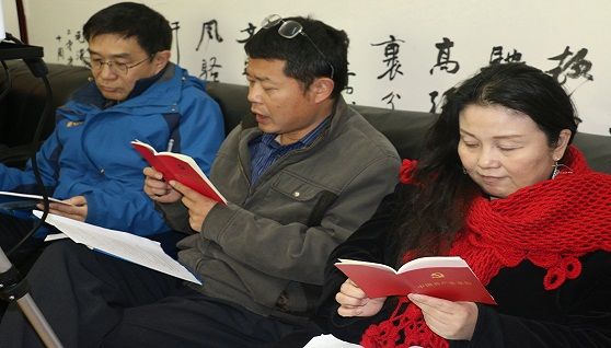 然后诵读党章,全体党员逐条逐句学习党章第二章关于党的组织制度的部分内容。