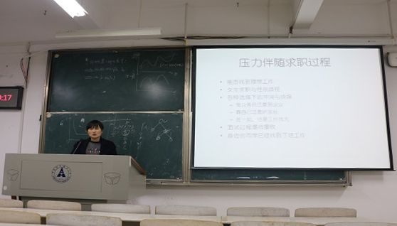 本次讲座张老师围绕压力管理和心理调适这两个方面,着重分析了为何需要压力管理以及如何进行压力管理。首先,张老师从与研究生求职息息相关的小事切入主题,指出当前普遍存在于研究生中的困扰和担忧,比如司考、考公务员以及恋爱问题,让大家明白压力无处不在,自然也会伴随着整个求职过程。