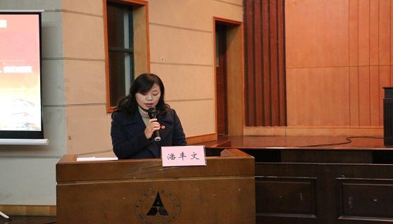随后潘丰文书记致辞。她表示,本次党史党情知识竞赛是本次“党员学习月”系列活动中的第三个阶段,同学们要依托竞赛活动回顾十九大精神,不忘初心、牢记使命。同时,潘书记还提出三点要求:一是以此活动加大关于党的知识的宣传力度;二是作为法科学子,应当加强学习专业知识,为依法治国奋斗;三是勉励参赛队伍取得好成绩,预祝活动获得圆满成功。