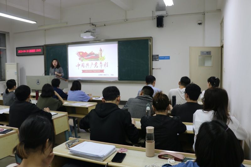 4月18日晚上7点,李杨老师以“认真学习党章,严格遵守章程”为题进行了讲课。李老师首先介绍了党章的发展历程,回顾了历次党章的修改,然后介绍了党章的组织结构,带领学员们学习了《中国共产党章程》的具体条文。最后李杨老师告诫学员们要学习践行党章,争做合格党员。