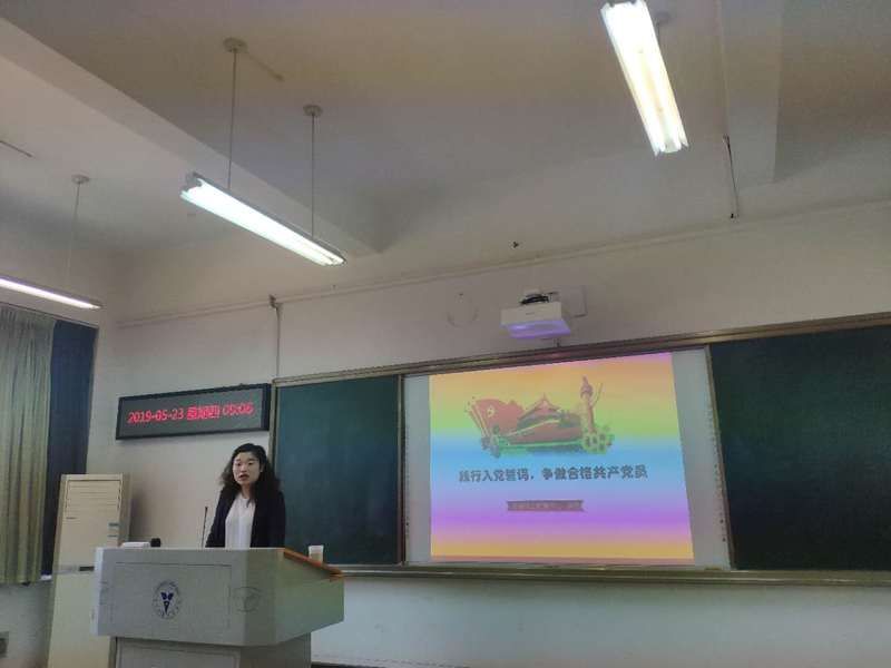 5月23日上午9点,李杨老师作题为“践行入党誓词,争做合格党员”的讲课,李杨老师首先介绍了中国共产党入党誓词的演变与发展,接着详细讲解了入党誓词的深刻内涵和如何践行入党誓词,争做合格党员等问题。她特别强调,作为一个新时代的党员要时刻关注国家的时事政治,大政方针,要及时学习党的新的理论思想,这样才能和党保持步调一致,共同进步;同时,她呼吁同学们在空余时间多学习党的基本理论和最新思想,提升自身的理论素养。