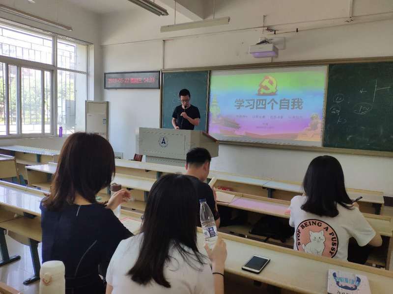 5月22日下午,刘翔老师讲课的主题为“学习四个自我”,刘翔老师首先介绍了四个自我之间的关系,然后详细讲解了“四个自我的科学内涵”、“学习四个自我的必要性”。最后,刘翔老师向同学们讲述了在日常生活中应如何实现“四个自我”,号召同学们要坚持学习,努力提升自身的综合素质,争取早日成为一名优秀的共产党员。