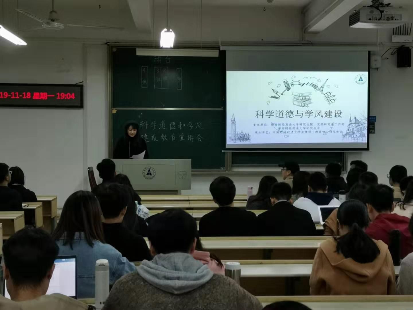 (通讯员李金明摄影 任俊豪)为了帮助大家树立正确的学术道德观念,规范法律硕士教育中心全体研究生学术行为,营造良好学风。2019年11月18日晚上7点,由我校研究生院、党委研究生工作部和校研究生会主办,法律硕士教育中心承办的“科学道德和学风建设宣讲教育”在文添楼302教室成功举办,法硕2019级同学参加了本次活动。