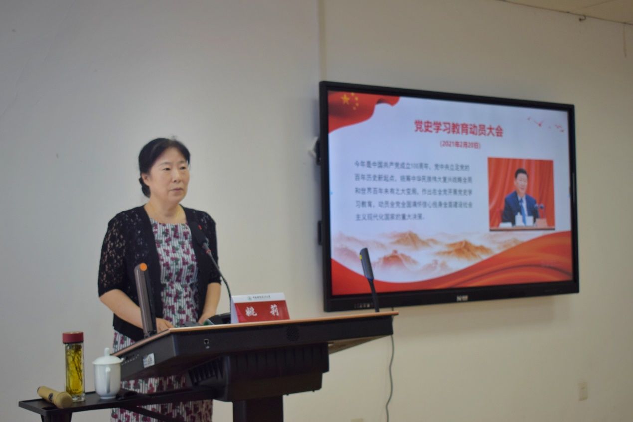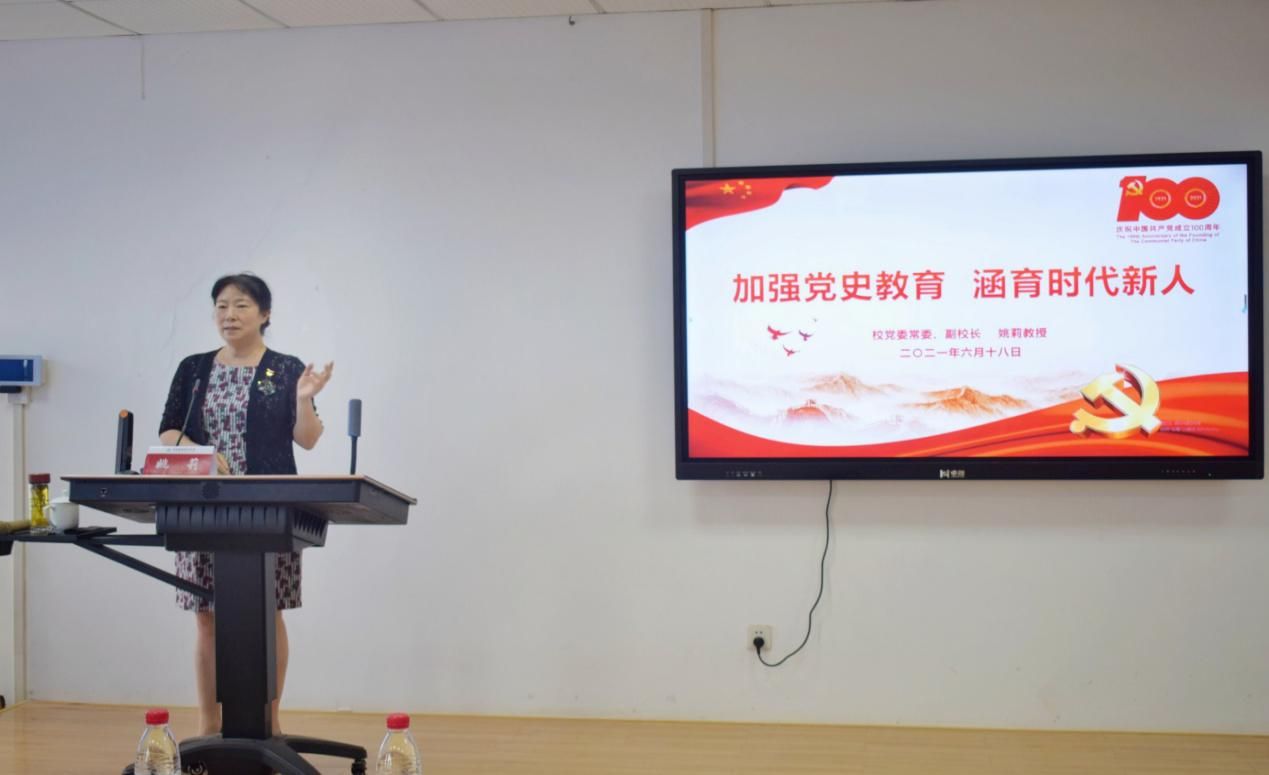 在讲解高校学生中加强“党史学习教育”的重大意义时,她强调,学习党史是高校立德树人的必修课,要重视“最好教科书”的教育指引功能,为广大青年学生上好这门必修课。她从四个方面介绍了学习党史的重大意义:一是学史明理,坚信创新理论,感悟真理力量。要重温马克思主义哲学基本原理,领悟马克思主义及其中国化创新成果,从而增强对党的领导、社会主义制度、共产主义理想的情感认同、价值认同和政治认同。二是学史增信,坚定理想信念,增强使命担当。要学会思考,树立信仰,在党史中感受革命信念的洗礼,增强忠诚核心、维护核心、看齐核心的政治自觉、思想自觉和行动自觉,将国家、人民、民族装在心中,赓续红色基因,当好接班人。三是学史崇德,砥砺坚韧品格,勇于攻坚克难。学习一代又一代共产党人顽强拼搏、不懈奋斗的优良品格,以“红船精神”、“延安精神”、“抗洪、抗疫精神”等中国共产党人的精神谱系为精神引导,传承中国共产党在长期奋斗中铸就的伟大精神,从党的光荣传统和优良作风中砥砺高尚品格,成为合格的中国特色社会主义事业接班人。四是学史力行,坚持行胜于言,矢志奋斗报国。从党创立和发展的理论与实践探索中出发,找准时代的坐标和奋斗目标,发挥先锋模范作用,坚定投身强国伟业的远大志向和小我融入大我的人生选择。