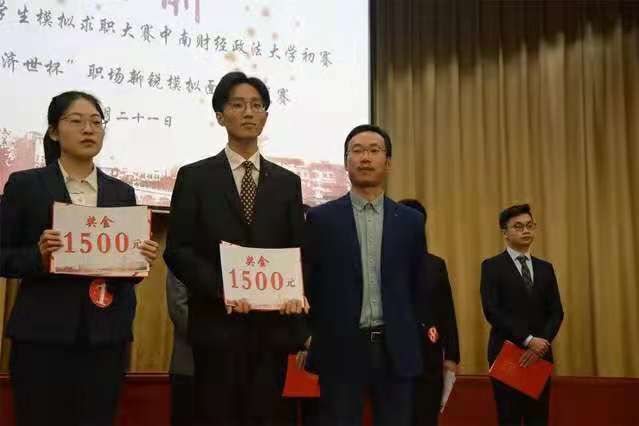 (通讯员 梁洪伟)10月14日-21日,学校举办第六届“勇往职前”湖北省大学生模拟求职大赛中南财经政法大学挑战赛,法律硕士教育中心周逸博、马佩瑶同学在比赛中斩获佳绩。