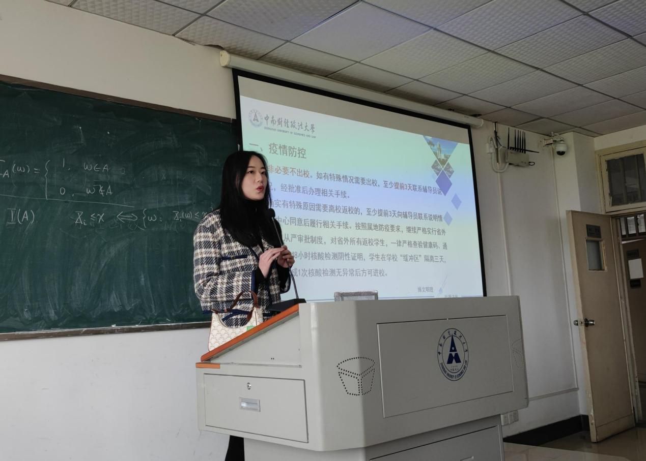 会议伊始,刘翔老师、余安琪老师分别强调了“非必要不离校”的防控原则,并就目前国内疫情状况结合学校疫情常态化防控要求向大家阐明了疫情目前存在的严峻形势。重申属地防控要求“继续实行省外返校学生从严审批制度,对省外所有返校学生,一律严格查验健康码、通信行程卡和48小时核酸检测阴性证明”及“缓冲区”的相关管理规定。建议大家在校期间合理安排作息时间、适当锻炼身体来增强自身免疫力,要以正确的心态来面对疫情防控,积极配合完成疫情防控工作。
