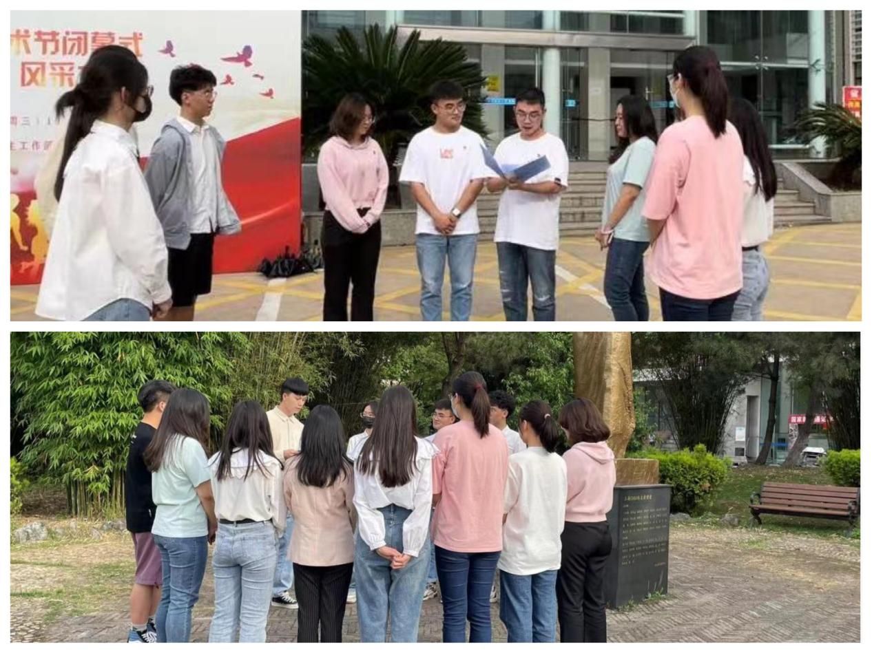 法硕21级涉外律师班党支部全体党员及入党积极分子将文波楼作为最后一站,全体党员在文波楼前重温入党誓词,学习中南大的校史校情,诵读36位毕业于中南大的诗人的作品《山湖集》。