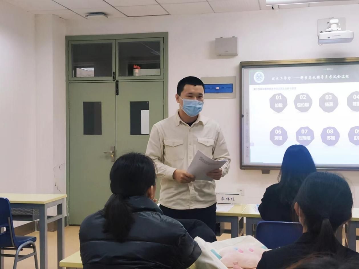 活动共分为经验分享、半结构化模拟面试、简历诊断和现场答疑解惑4个环节。在经验分享环节,马晨娇从辅导员工作的基本情况、辅导员选聘要求、未来发展方向、备考经验以及辅导员岗位选择等几个方面,为同学们进行了详细的讲解,让同学们对高校辅导员的认知更加清晰,对高校辅导员的职业要求有了更深入的了解。