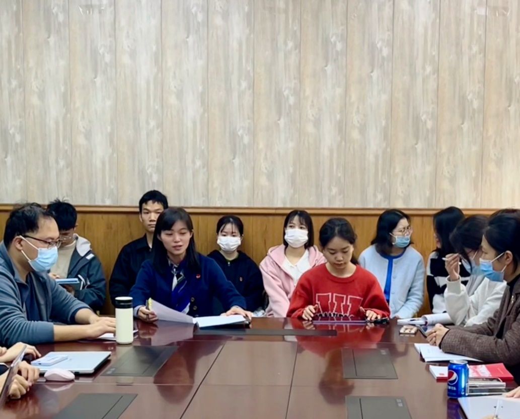 在活动开始之前,易育同志发表致辞。她指出此次联合党日活动加强了本科生和研究生之间的联系,各位党员应当认真研读党的二十大报告。作为法学生,应当将个人的职业规划同党和国家的大政方针相结合,为社会做出自己的贡献。