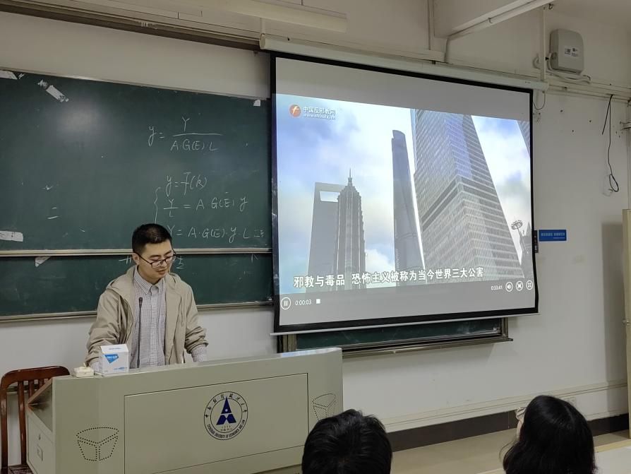活动第一项,观看国家安全教育公开课。公开课中,中山大学国际关系学院魏志江教授讲解了如何科学地评估“一带一路”非传统安全威胁的威胁程度及其治理策略,大家得以形成对五大威胁形态的初步认识。