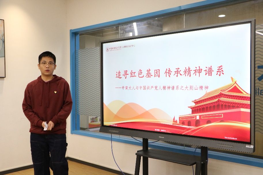 第二位选手是来自2023级非法学1班的刘涛,他的主题是“追寻红色基因,传承精神谱系——中南大人与中国共产党人精神谱系之大别山精神”。讲述了大别山精神是我们党的宝贵精神财富,是中南大人不可磨灭的精神记忆。