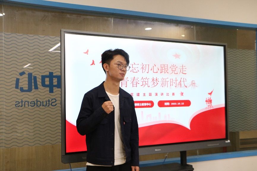 (通讯员 余安琪 高天霖 朱浩泽 摄影 蒋琳琳)10月12日上午,法律硕士教育中心党建新闻工作站和团总支在大学生素质教育中心02号会议室举办了以“不忘初心跟党走,青春筑梦新时代”为主题的研究生党建主题演讲比赛。本次比赛邀请了团总支副书记苏利珍,党建新闻工作站2届站长李晚林、李雪,副站长朱浩泽,2022年党建主题演讲比赛一等奖获得者袁鑫祺担任评委。