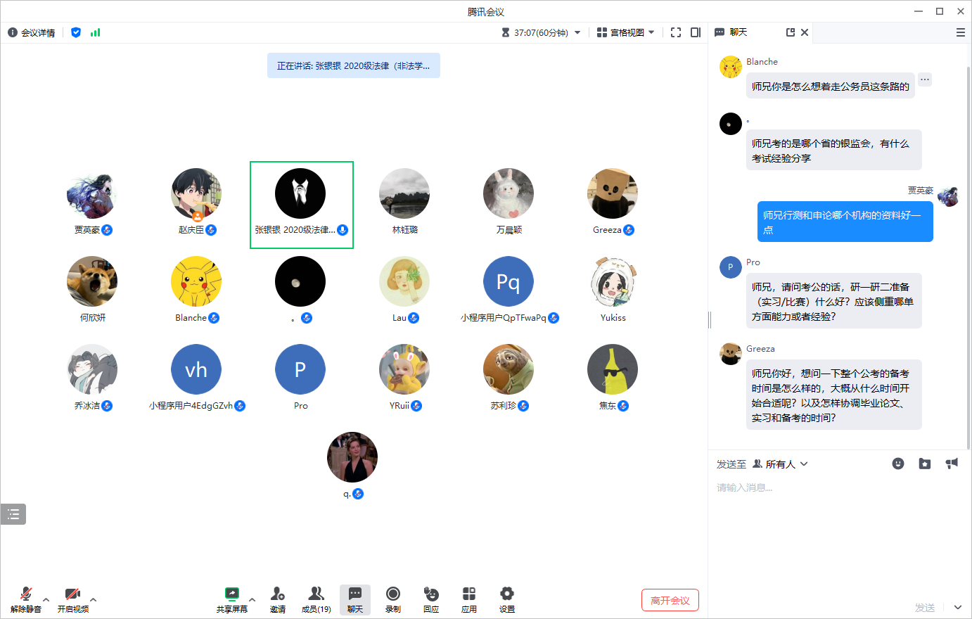 会议尾声,张银银分享了工作感悟,强调可以在实习时有所侧重,积累工作经验,并对同学们提出的问题给予了耐心、细致的解答,祝愿同学们顺利毕业,找到心仪的工作。