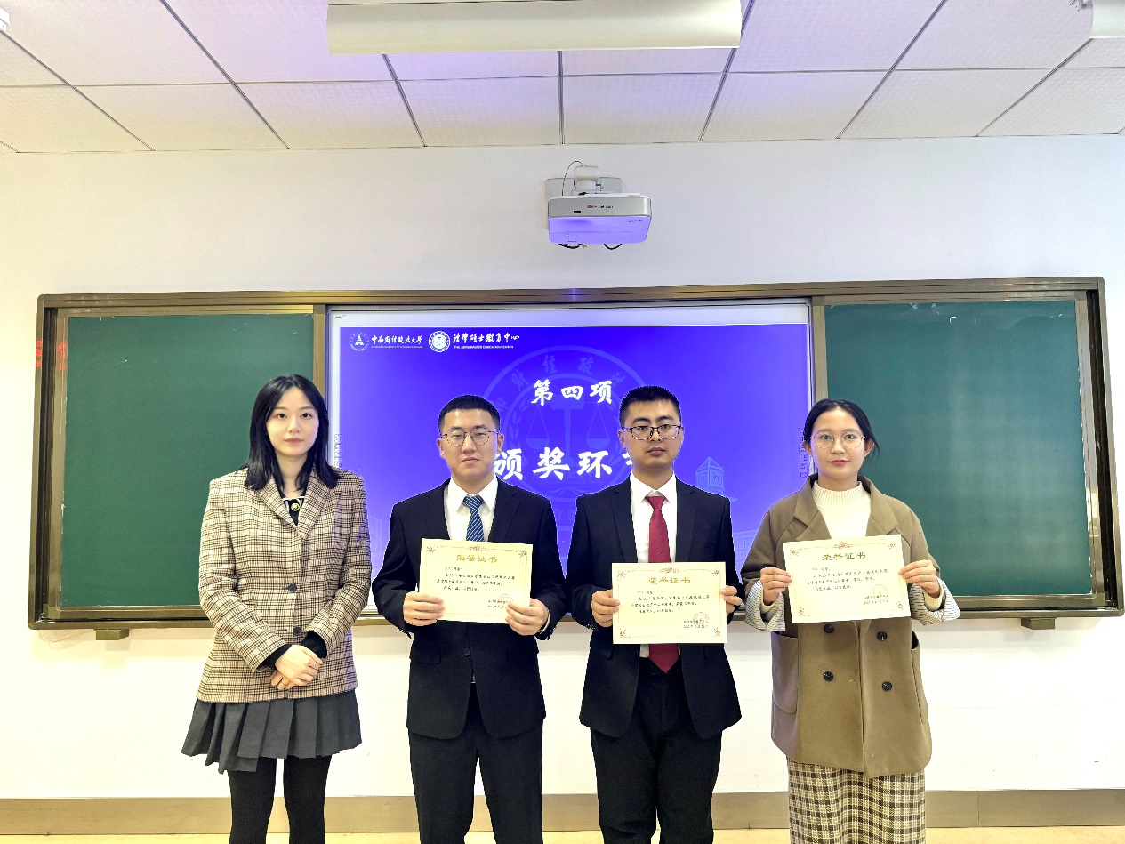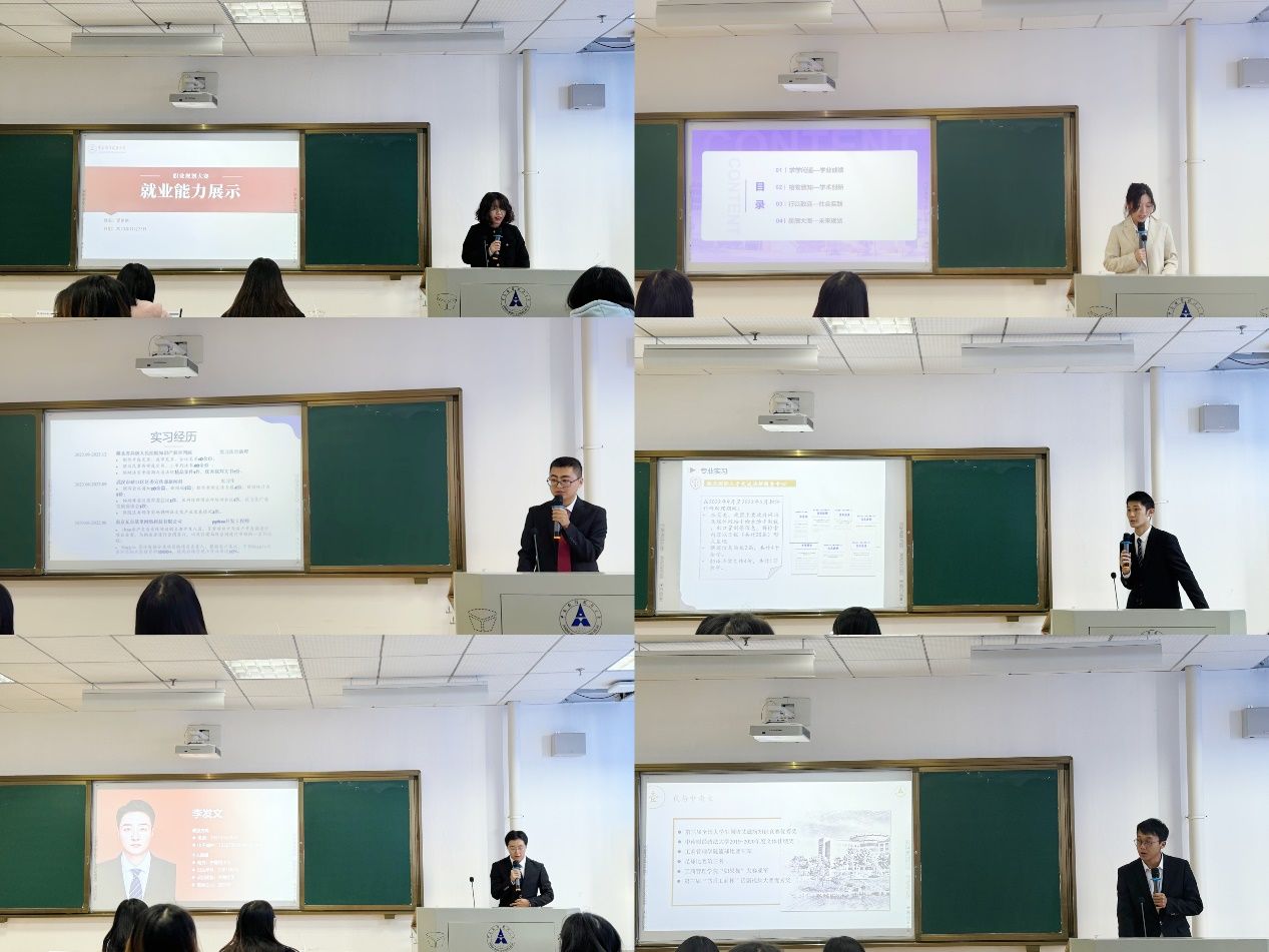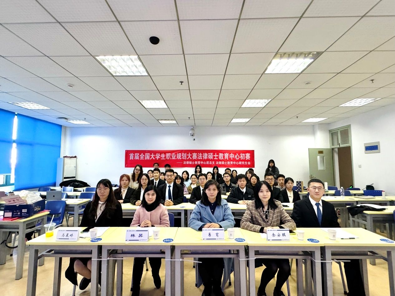 (通讯员 余安琪 楼钟琦 潘敏)11月23日下午,首届全国大学生职业规划大赛法律硕士教育中心初赛复试在文澴楼315成功举行。出席本次比赛的评委老师有法学院党委副书记兼法律硕士教育中学学生党总支书记易育、马克思主义学院团委书记林昇、法律硕士教育中心辅导员余安琪、马晨娇和周诗琪。本次比赛以“筑梦青春志在四方,规划启航职引未来”为主题,旨在增强高校生涯教育和就业指导,增强大学生生涯规划意识,促进毕业生高质量充分就业。通过初筛的优秀选手们齐聚一堂,同台竞技,展示自己的职业规划。