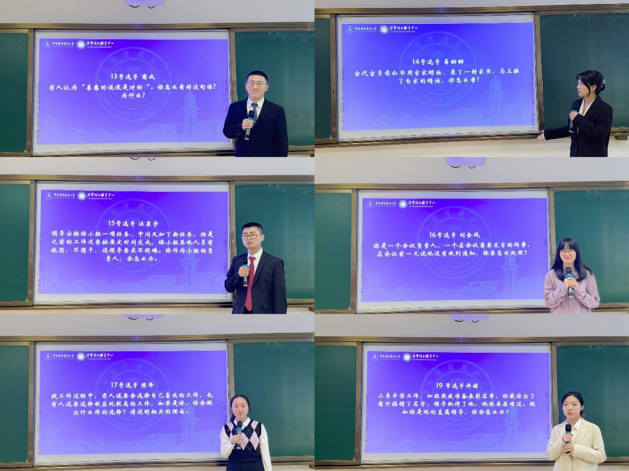 综合面试环节,每位选手针对自己所抽取的题目进行限时2分钟的作答,在随后进行2分钟的评委问答环节,选手们从容地回答着评委们的提问,充分展现出扎实的专业知识和优秀的沟通能力。