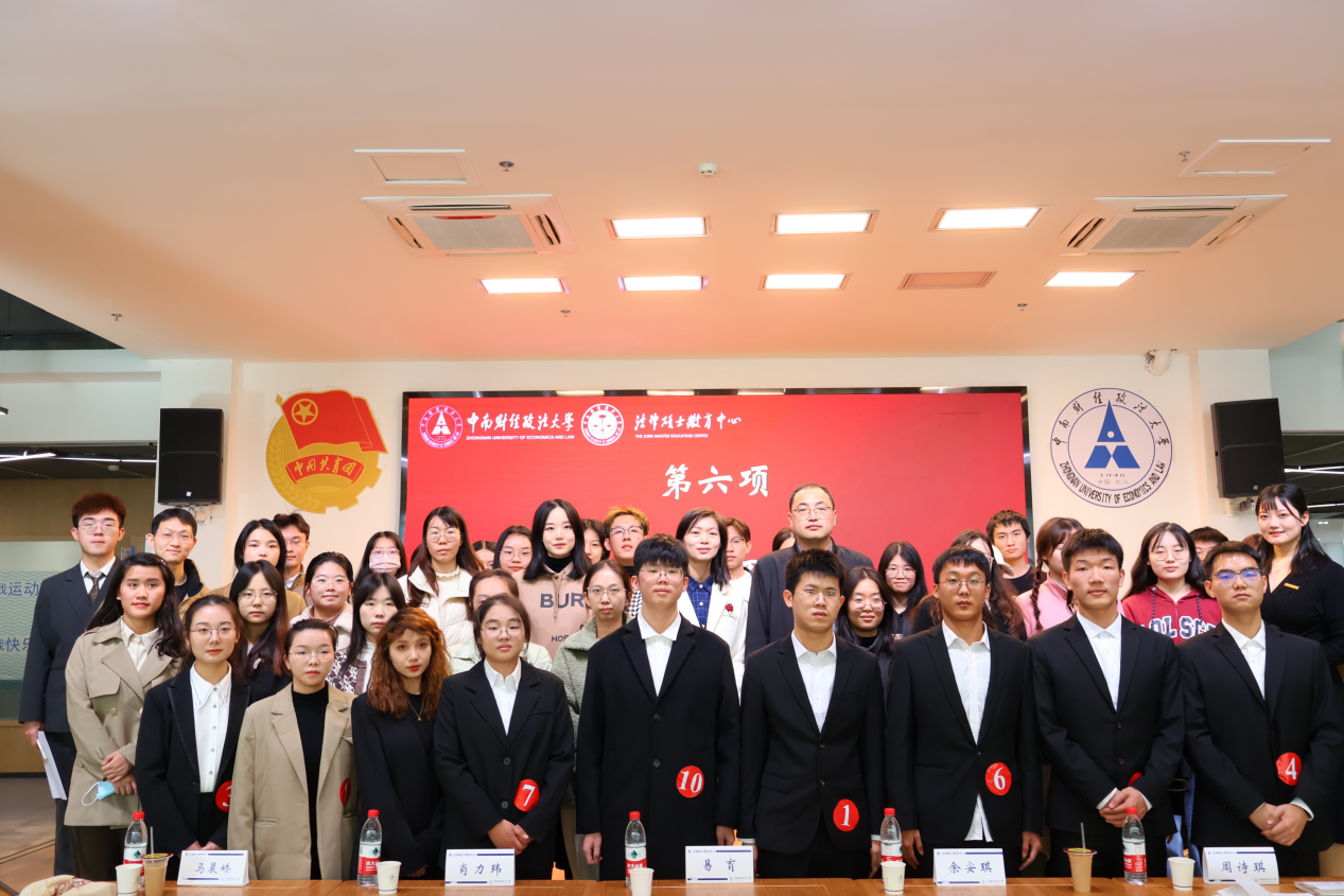 经过初赛的选拔,共有来自会计学院、法与经济学院、法学院、法律硕士教育中心的10名同学晋级本次决赛。决赛设置无领导小组讨论、结构化面试2个环节,赛中还穿插了有奖竞答活动。