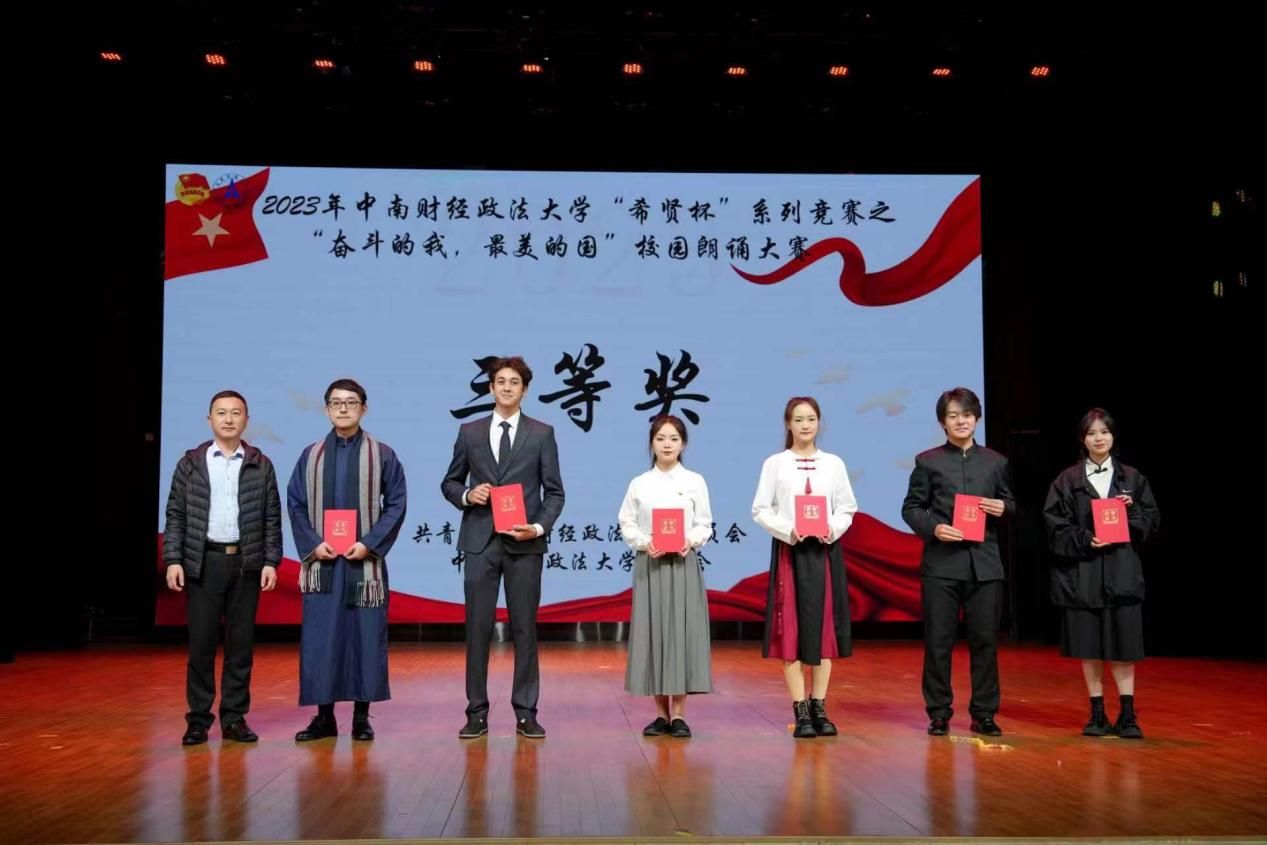 (通讯员 余安琪 高瑾)2023年12月10日下午,我校团委在艺体中心音乐厅举行了“奋斗的我,最美的国”校园朗诵大赛决赛。经过激烈的角逐,法硕研究生王逸之、尚凡洁、高聪、程佳慧、李奕麟、陈锦康和侯雅欣组成的代表队荣获本次大赛三等奖。