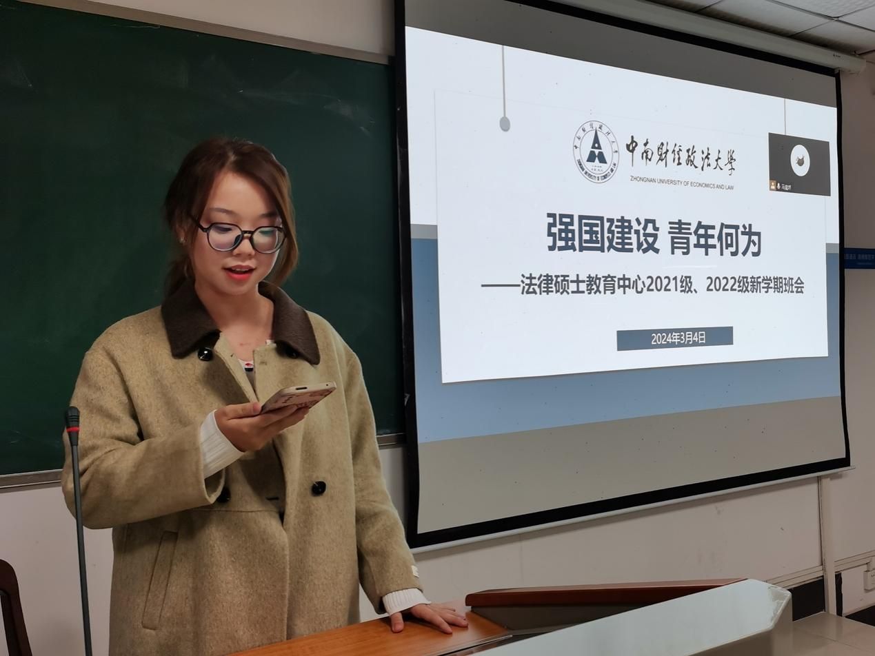 (通讯员 余安琪 陆盈伶 潘敏)阳春三月,学期伊始。为贯彻党的二十大精神,践行新时代新青年的使命任务,做好学业规划和就业准备,法律硕士教育中心于3月4日、5日召开了“强国建设、青年何为”主题班会,本次班会采取线上线下同步召开的方式进行,法律硕士教育中心全体同学参加班会,研究生工作办公室副主任余安琪、辅导员马晨娇和周诗琪出席班会。