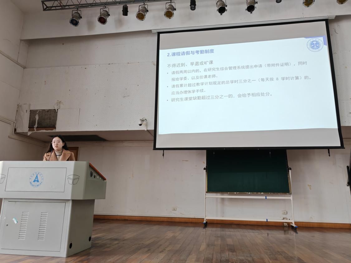 周老师着重强调了课堂考勤制度,以《中南财经政法大学研究生学籍管理办法》为基础,考勤登记、请假手续、缺勤处理等环节都应按要求严格执行。