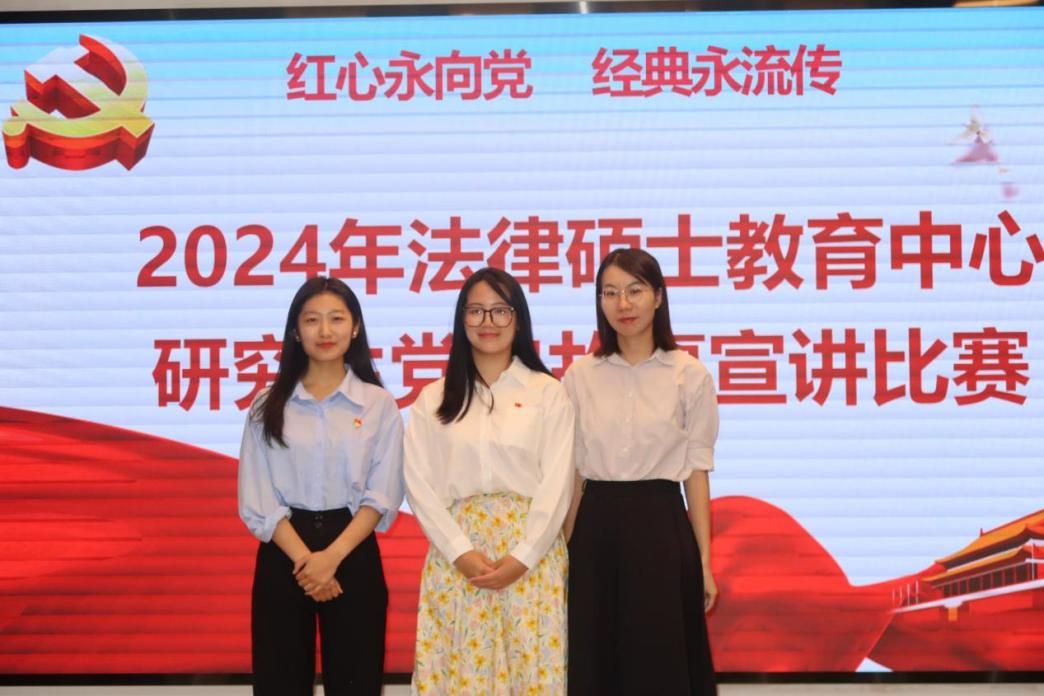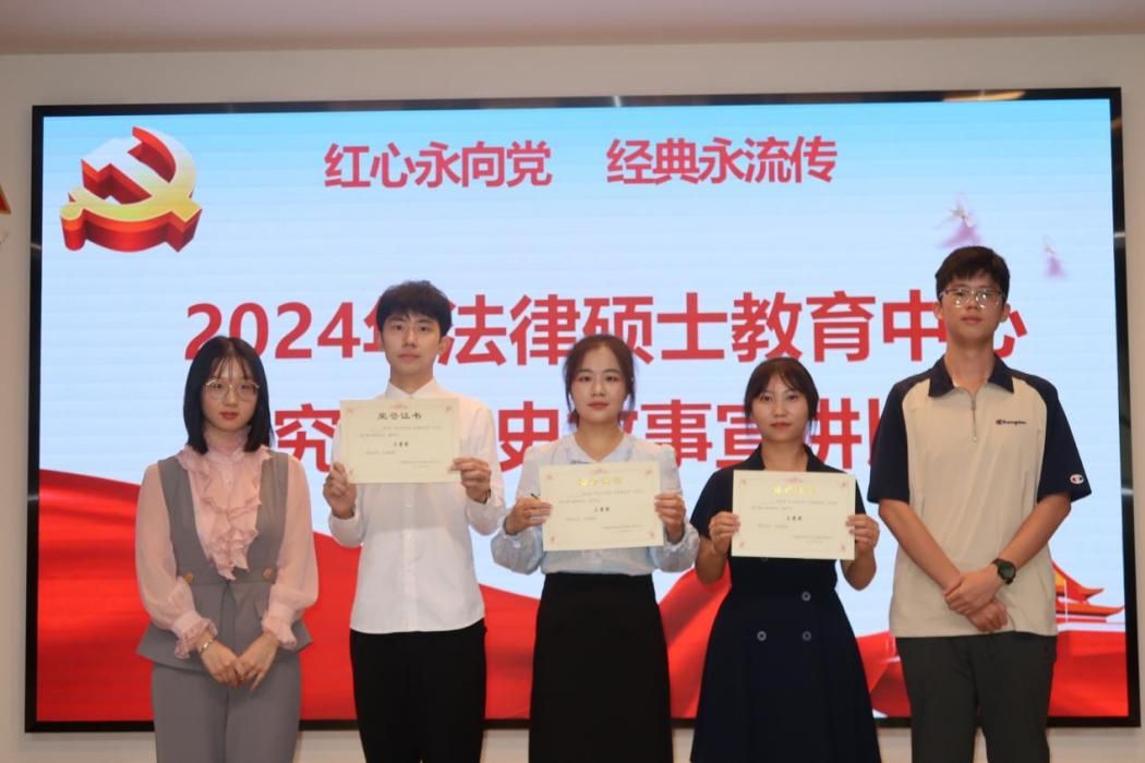 (学生通讯员 段玉萍 潘思琦)为深入学习贯彻习近平新时代中国特色社会主义思想,全面贯彻落实党的二十大和二十届三中全会精神,9月29日下午,法律硕士教育中心在大学生素质中心路演厅举办了2024年研究生党史故事宣讲演讲比赛,展现研究生学子“爱国、励志、求真、力行”的青春本色。本次宣讲比赛邀请了法律硕士教育中心辅导员马晨娇、周诗琪,学生代表李奕麟、韩青蕾、瞿晨、高瑾担任评委。