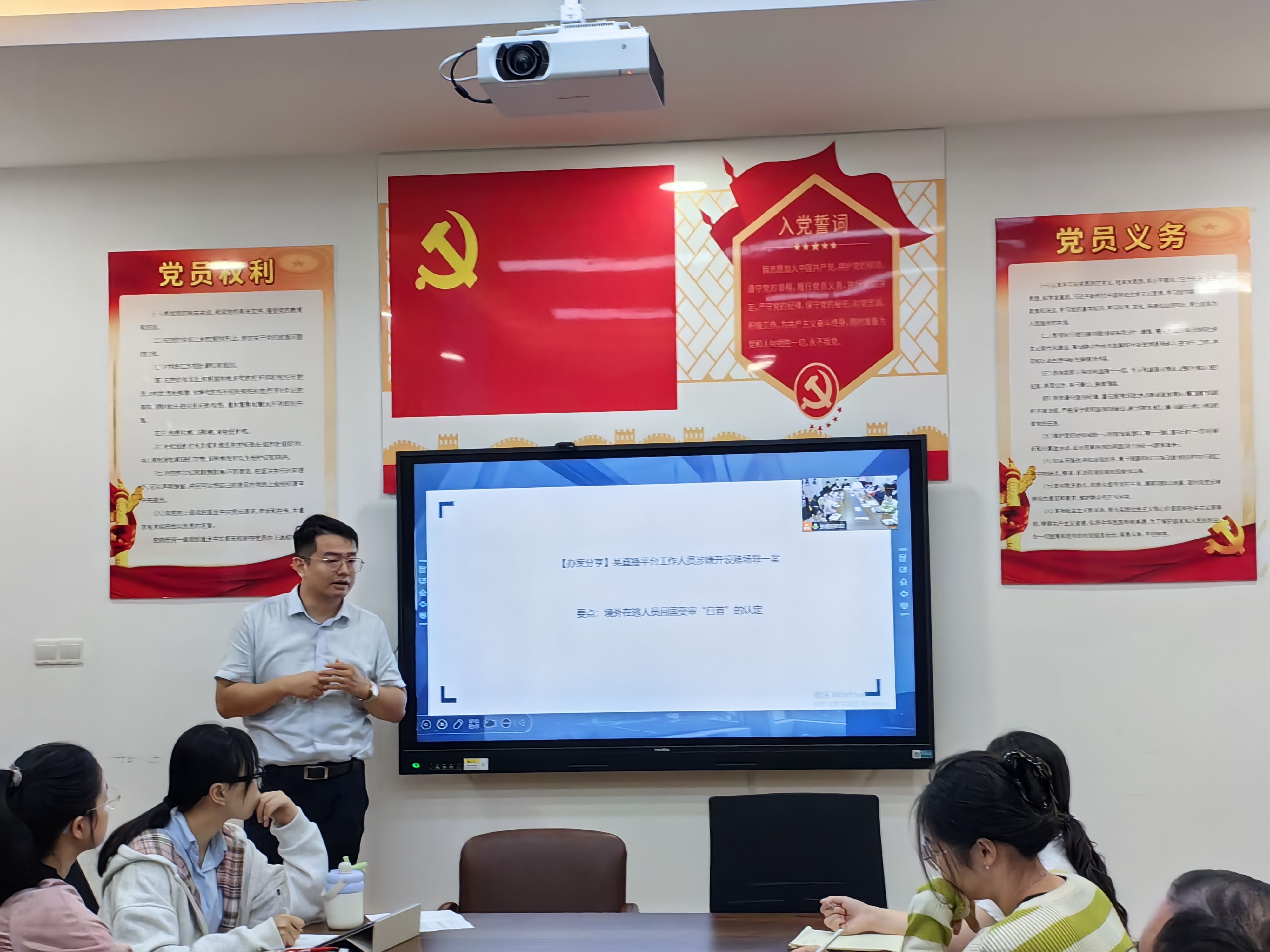 (通讯 洪亦可 摄影 张婕)为了加强案例教学和案例建设,培养法律专业学位研究生的案例分析能力和实践能力,10月16日晚上,北京天达共和(武汉)律师事务所合伙人彭夫为我校学生讲授“跨境刑事法律服务的实践与展望”,这是法律硕士教育中心举办“法律讲堂”栏目“案例在线(case on line)”系列第五场讲座,讲座采用线上线下相结合的方式。讲座由法律硕士教育中心法律硕士(政务法治与实务)方向导师李雷副教授主持,辅导员周诗琪参加讲座。