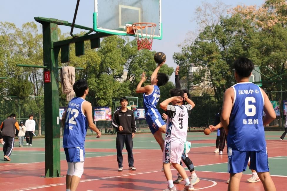 (通讯员 丁国记 摄影 杨佳彬 万晴 王子腾 李颖涵)为增进兄弟学院之间的友谊,促进各学院之间的沟通交流,提升大家参与体育锻炼的积极性,11月20日至11月28日,由法律硕士教育中心、国家治理学院、哲学院、法学院、公共管理学院和信息工程学院共同举办的六院联合研究生篮球赛在鸟笼篮球场举行。“六院杯”篮球赛作为一年一度的体育盛事,汇聚了来自不同学院的篮球精英,今年的比赛更是激烈异常,各队实力不容小觑。法硕中心代表队凭借精湛的球技、默契的配合和不屈不挠的斗志,一路过关斩将,最终在决赛中以压倒性的优势战胜对手,再次将冠军奖杯收入囊中,勇夺“六院杯”四连冠!