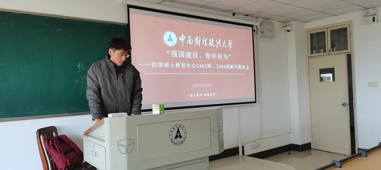为深入学习贯彻党的二十届三中全会精神,引导青年学子将个人理想融入国家发展大局,新学期伊始,法律硕士教育中心2022级与2024级于3月4日、5日召开了“强国建设、青年何为”主题班会,本次班会采取线上线下同步召开的方式进行,法律硕士教育中心2022级与2024级全体同学参加班会,研究生工作办公室副主任余安琪、辅导员马晨娇出席班会。