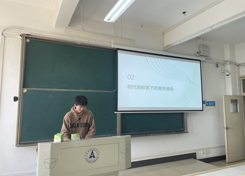 在自由发言环节,同学们结合专业特点展开深入讨论:2401班班长郑一凡从法治建设角度剖析青年责任,2402班刘旭倡导通过社会实践传递青春正能量,2403班童麟舒则分享了国际仲裁领域的报国路径。